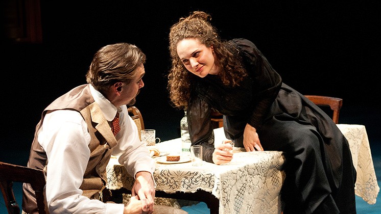 On a 19th-century Russian lakeside estate, the magic of summer evokes passion in three generations of self-doubting artists. Masha pines for the young writer Kostya, but Kostya yearns for the aspiring actress Nina, who is infatuated with the older novelist Trigorin. Trigorin “loves” both Nina and theatre diva Irina. Irina decidedly loves herself. And everyone aches for recognition, as artists and as human beings. With material not in earlier stage versions, Appel delivers a sexy, full-blooded adaptation of Chekhov’s heartbreaking and comic exposé of unfulfilled desire.